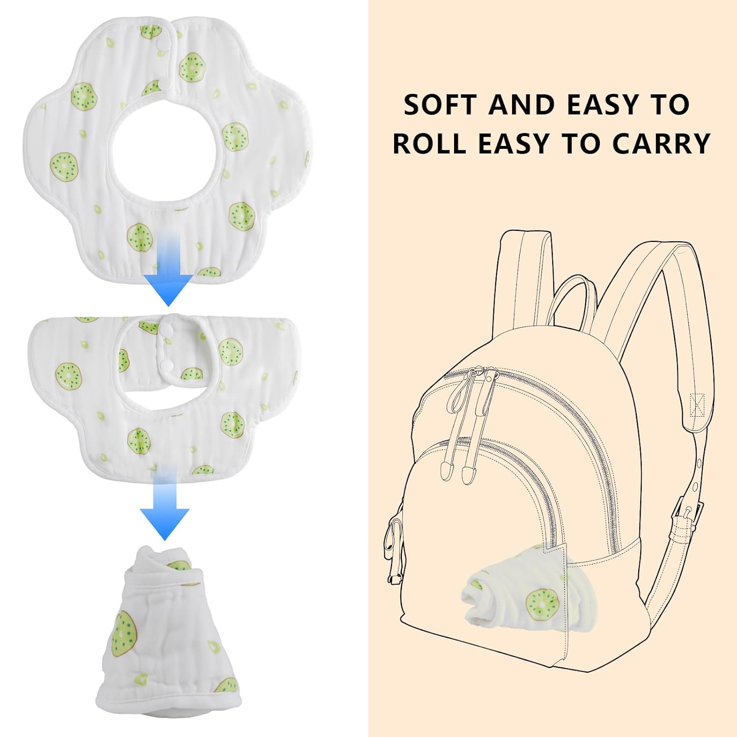 ❣️【𝐒𝐔𝐏𝐄𝐑 𝐒𝐎𝐅𝐓 𝐀𝐍𝐃 𝐀𝐁𝐒𝐎𝐑𝐁𝐄𝐍𝐓】 This Muslin bibs with 8 layers of gauze, 100% organic cotton, super soft and absorbent. Quickly absorbs and absorbs liquids, dribbles, rumination formulas and messy food spills, keeping drooling and teething babies dry and fresh all day long.
