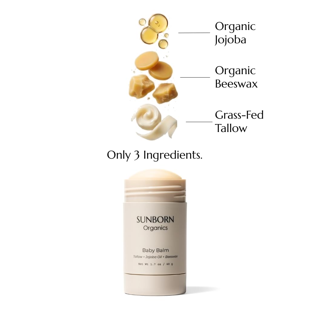This balm is truly a game changer. My baby had red eczema patches on her cheek that wouldn’t go away, and after trying so many “gentle” baby creams that didn’t help, I was really discouraged. Then we found this Sunborn baby balm, and it honestly changed everything. Whenever her skin flares up now, I put a thin layer on her cheeks after her bath, and by the next morning her skin looks noticeably calmer, smoother, and so much clearer. After a few nights of doing this consistently, those stubborn red patches faded dramatically.I wouldn’t call myself a super “crunchy” mom, but I am very picky about what goes on her skin. I read every label and try to avoid anything with a long list of mystery ingredients. One of the main reasons I felt so comfortable trying this balm is because the ingredient list is incredibly simple and transparent: just tallow, jojoba oil, and beeswax. That’s it. No fragrances, no synthetics. Nothing extra. The texture is rich but not greasy, melts right in, and I feel genuinely good knowing I’m putting something this clean and effective on her sensitive skinShort review:1.      One balm lasts a long time. even if you do use it regularly every day, you only need a tiny amount for each application.2.      Made with clean, gentle ingredients that feel safe for baby’s sensitive skin.3.      Calms irritation and rough texture fast . I see a difference overnight.4.      Bonus: it works on adult skin too. When my face is a bit irritated or textured, I’ll use a little in place of my moisturizer, and I wake up with less redness and smoother skin.