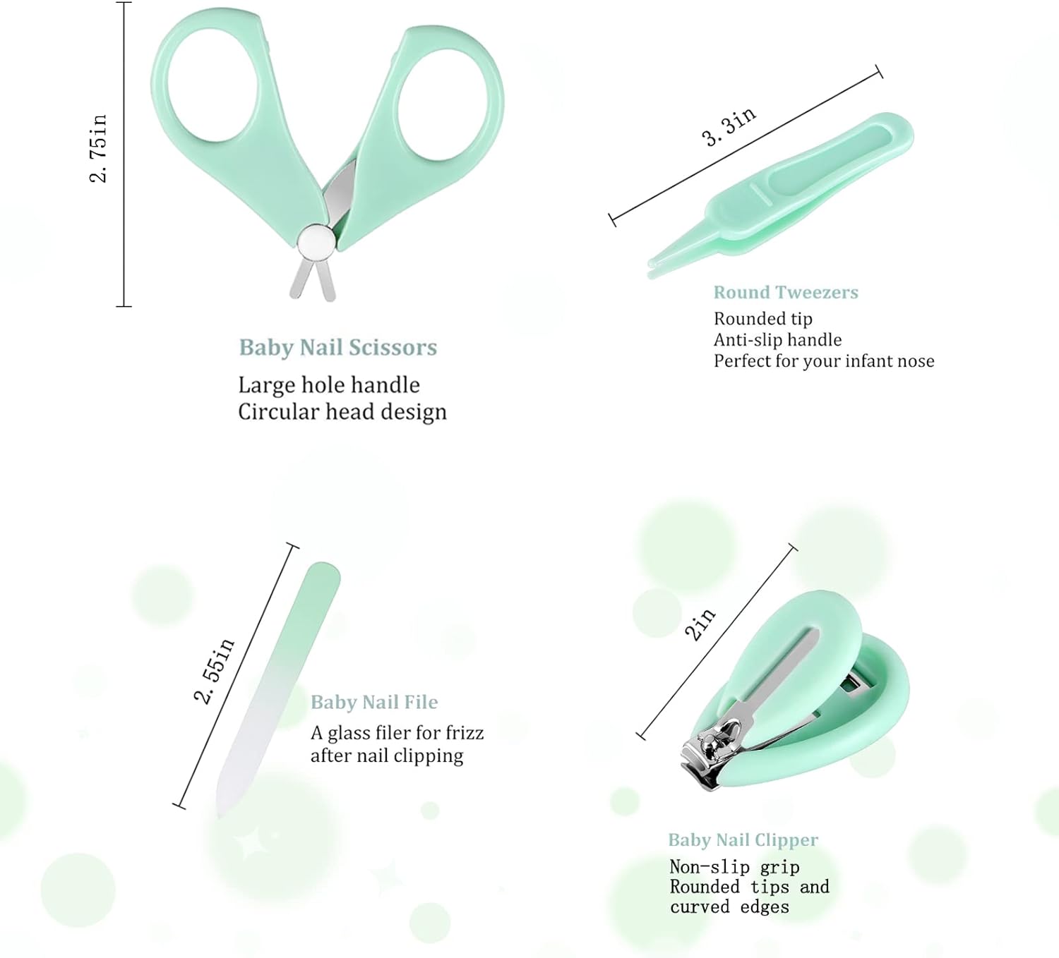 Baby Nail Care 1+1 Set: Compared with the previous ordinary nail grinder set for a preferential combination. Let mom give her baby more care options. The four care tools are manufactured according to the highest hygiene standards. The blades are made of high-quality precision stainless steel and will not rust. The handles are made of premium ABS, non-slip, and long lasting.