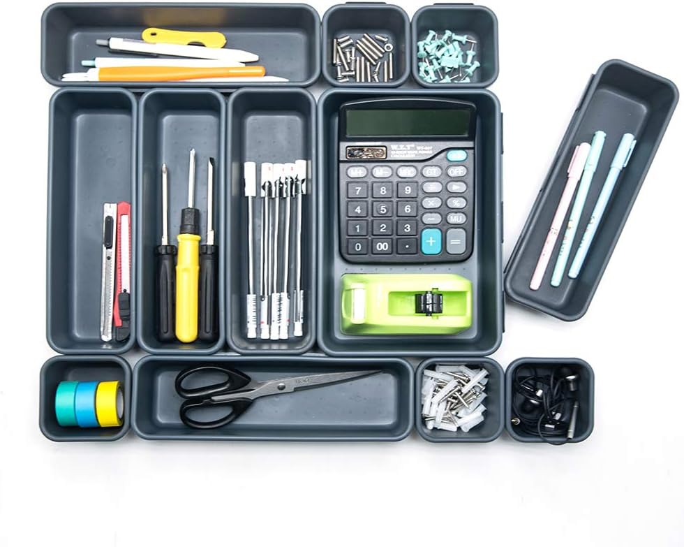 For each size drawer organizer, there is interlocking design to keep every drawer organizer bin neat and lock together. Make every stuff aligned in the drawer to find easily.