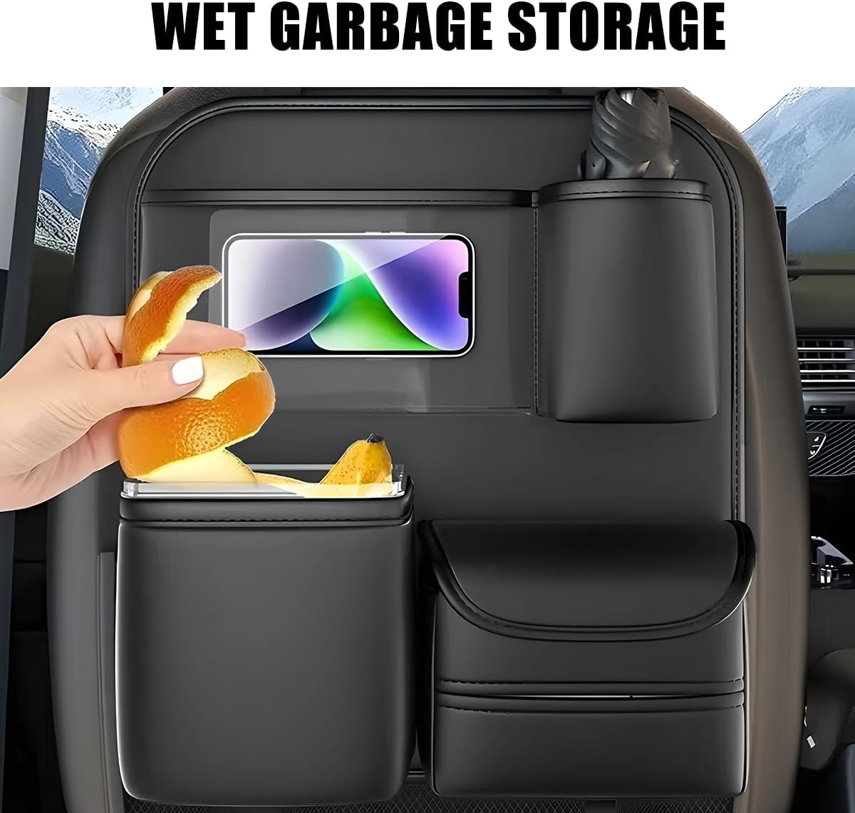 Multi-Function: The car backseat organizer features 4 storage pockets with a compartmentalized design, allowing items to be organized by category for a tidier arrangement. It has a transparent touch-screen pocket, allowing users to watch videos without holding their devices, freeing up their hands. In addition, it has a car tissue box for quick and easy tissue retrieval, a storage box for collecting in-car trash, and another pocket for storing items like water bottles, umbrellas, or sunglasses.