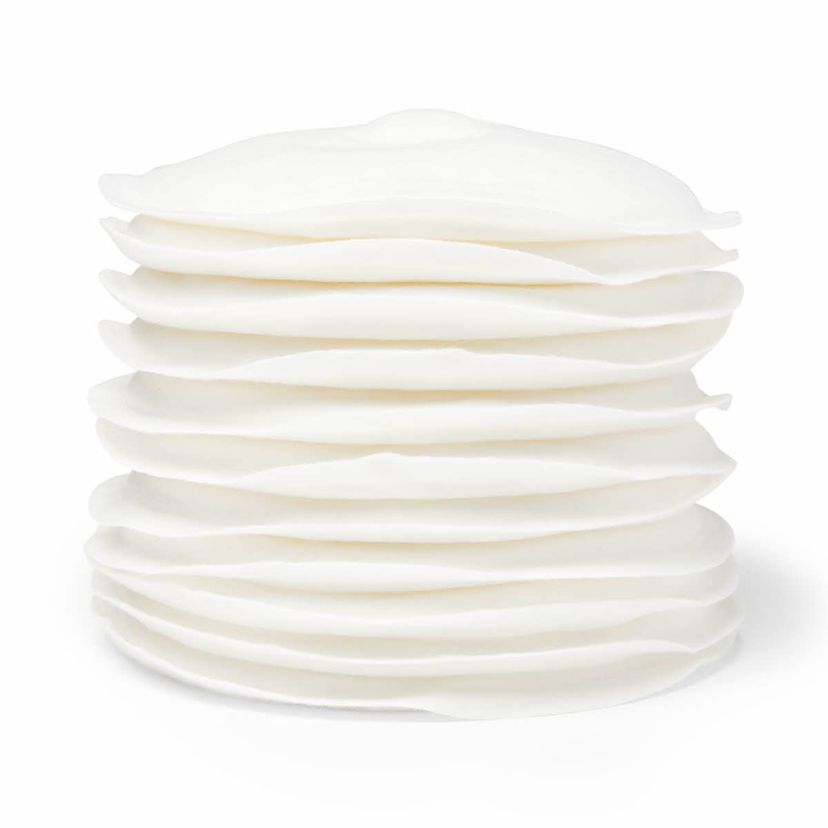 These are my favorite disposable breast pads. Stiff enough that they don’t fold up in the bra and stay in place.