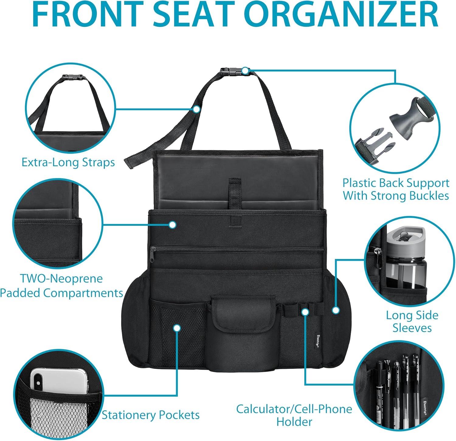 8 reviews for Elantrip Car Front Seat Organizer, Back Seat Storage with Adjustable Straps Truck Seat Organizers for Delivery Drive, Office File, Passenger Seat