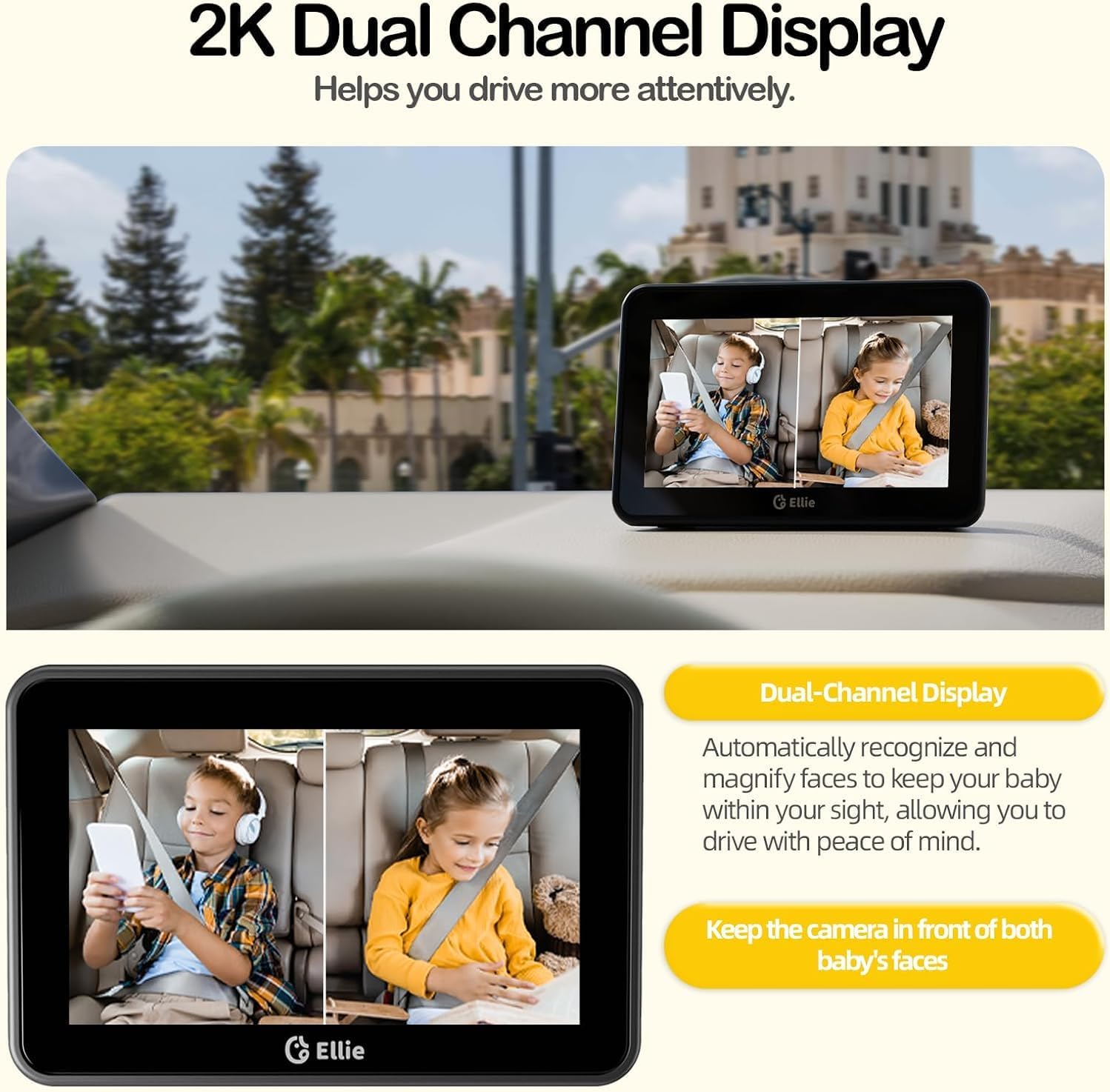 4 reviews for Ellie Baby Car Monitor, 2K UHD Backseat Monitor with Color Night Vision, Face Tracking, Dual Display for 2 Kids, Wide View Car Baby Camera, Smart Video Capture & App Control
