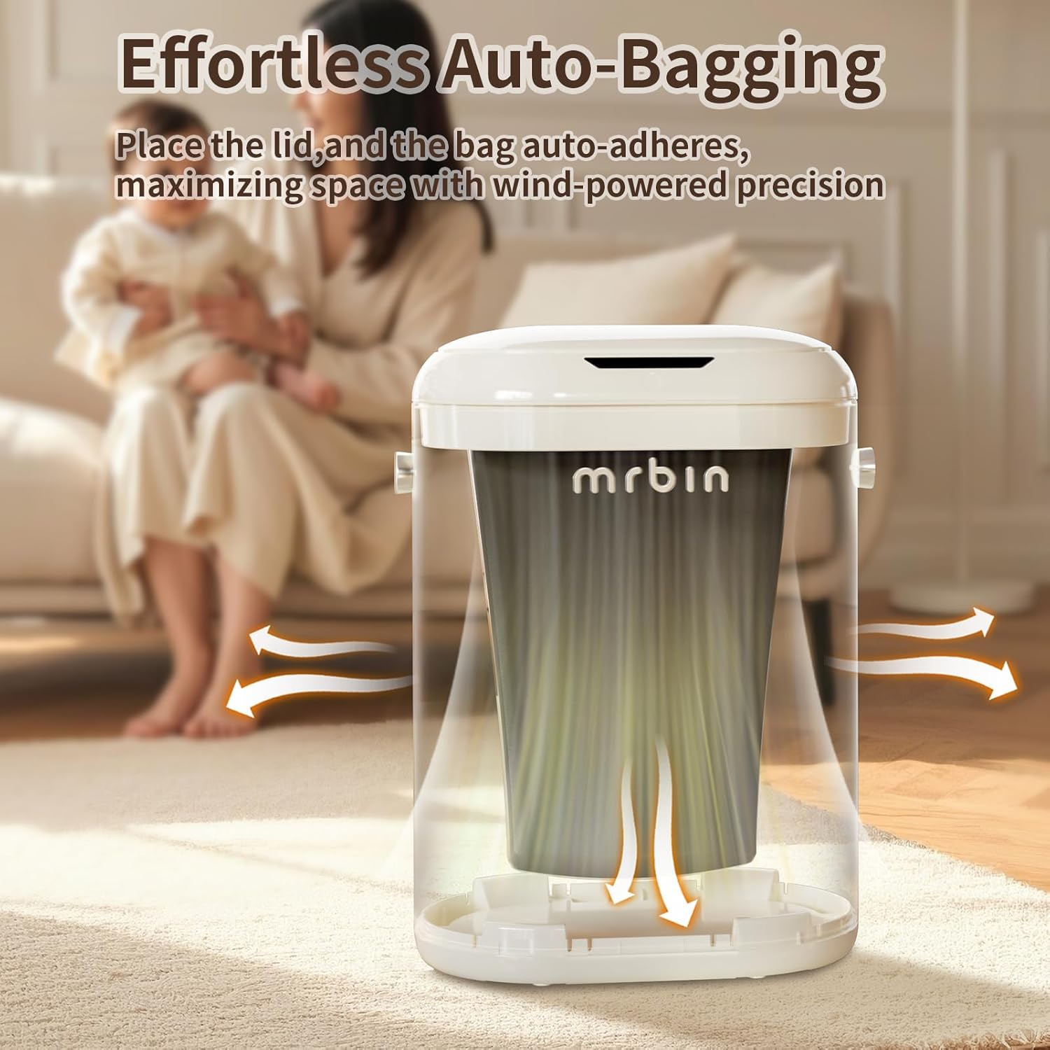 Innovative Adsorption Bag Lining: Automatically lines the bag, sticking it to the inner wall. Uses regular trash bags, so no need for special diaper bags. Keeps things clean, easy, and stops leaks and liner sagging.