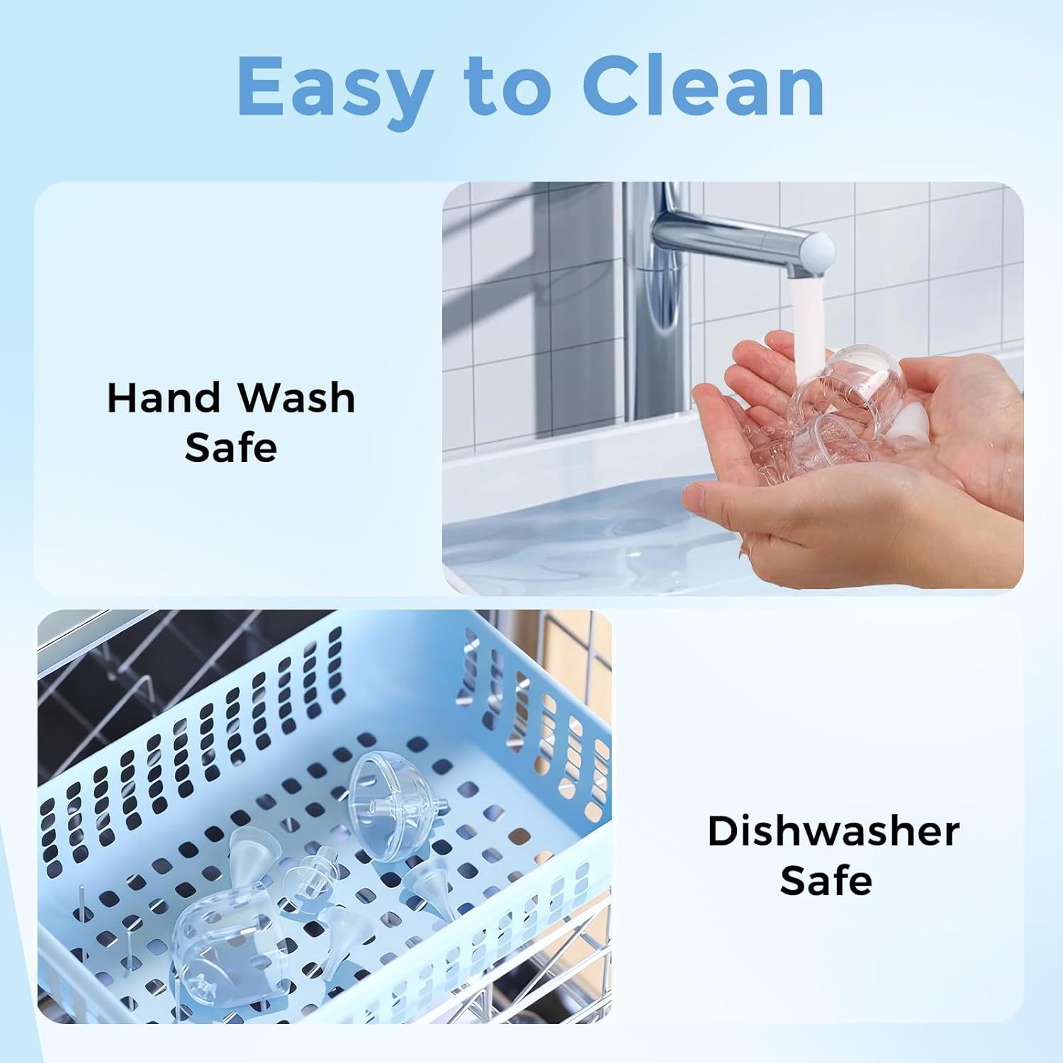 The Nasal Aspirator parts(Besides the machine itself and the Type-C USB-Cord) are dishwasher safe, allowing you to keep them clean and hygienic for the next use with ease.