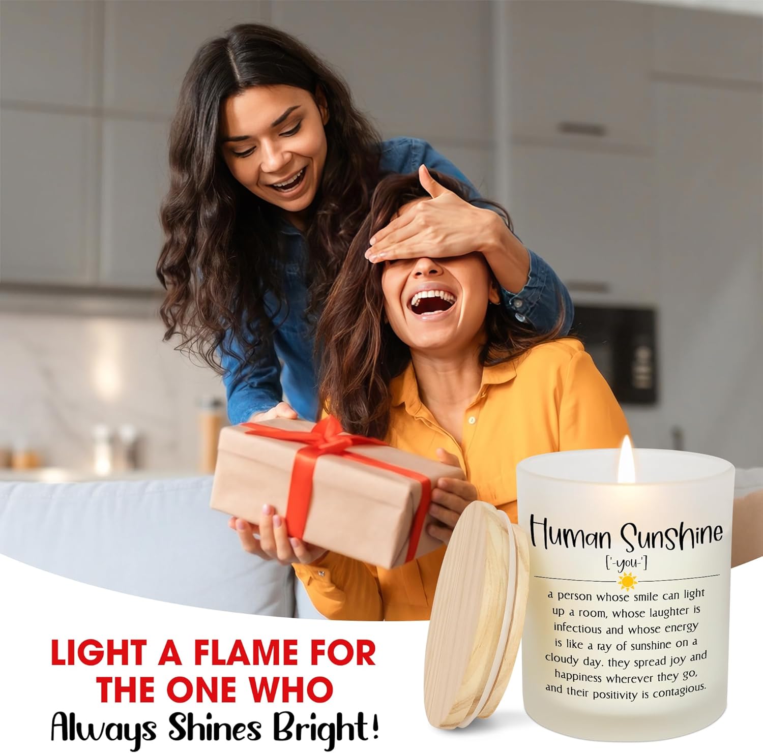HUMAN SUNSHINE CANDLE GIFTS – Share encouragement and positivity with our inspirational candles. These uplifting candles for women and men celebrate every special moment, shining as meaningful coworker gifts, boss gifts, teacher gifts, nurse gifts, therapist gifts, human sunshine gifts, thank you gifts for best friends, motivational gifts for women and inspirational gifts for friends.