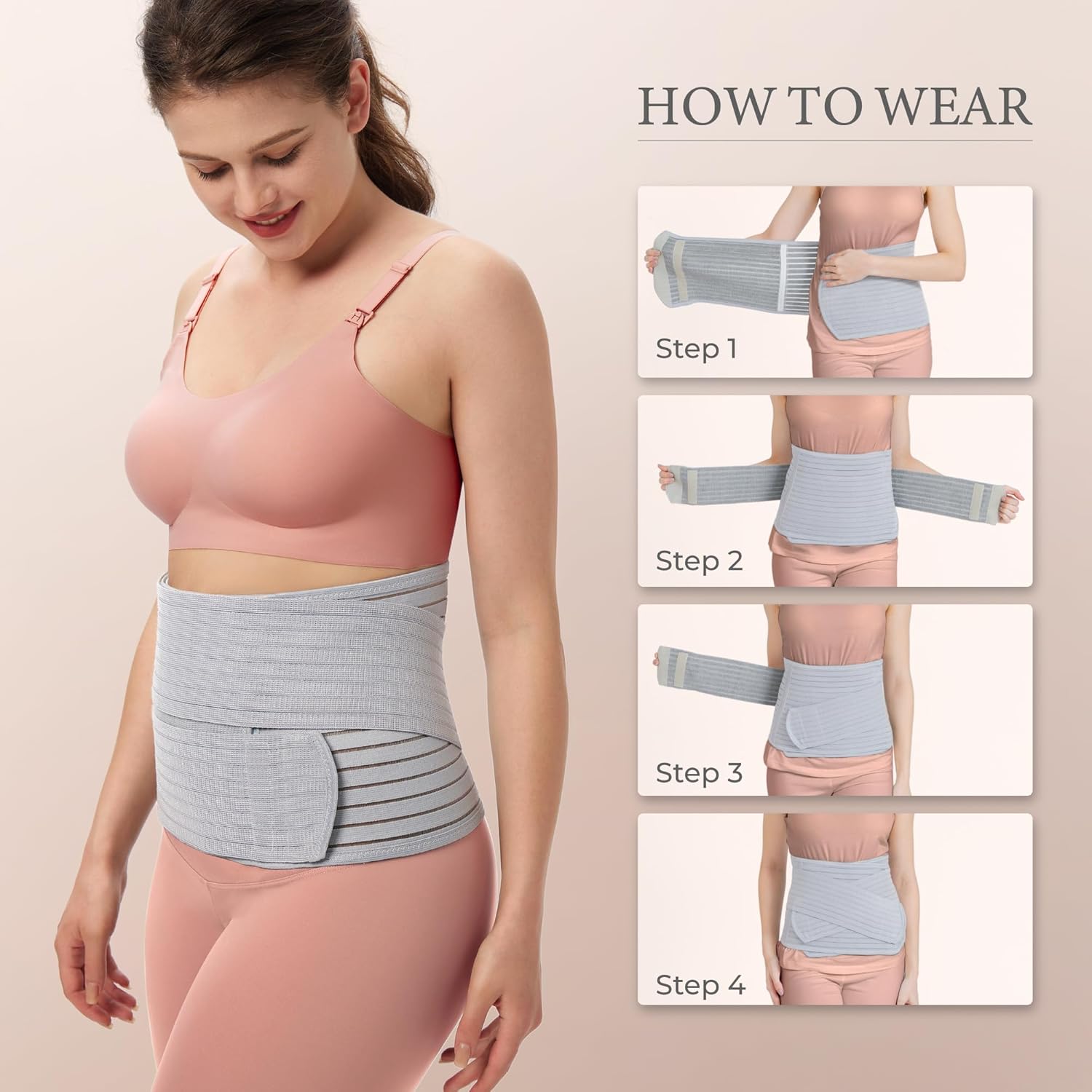 BREATHABLE & LIGHTWEIGHT MATERIALS: Our postpartum belly wrap is designed for maximum comfort and support. Made of breathable, elastic mesh, it provides gentle compression to the abdomen and pelvis, promoting better blood circulation and reducing swelling. Our belly binder keeps you cool and dry in any season, while the soft and lightweight fabric makes it perfect for everyday wear, providing gentle support during postpartum or as a c-section recovery belt for women.