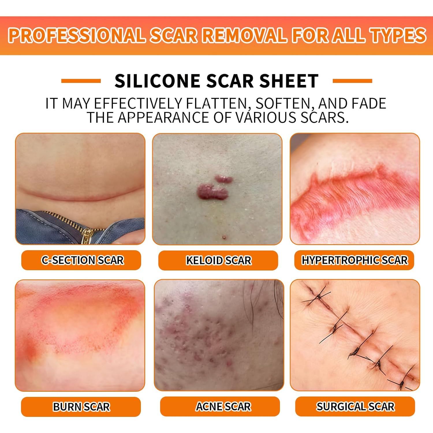 PROFESSIONAL SCAR REMOVAL FOR ALL TYPES:The silicone scar sheet may effectively flatten, soften, and fade the appearance, reduce redness, itchiness associated with various scars, including surgical, C-section, keloids, hypertrophic, burns, and acne scars
