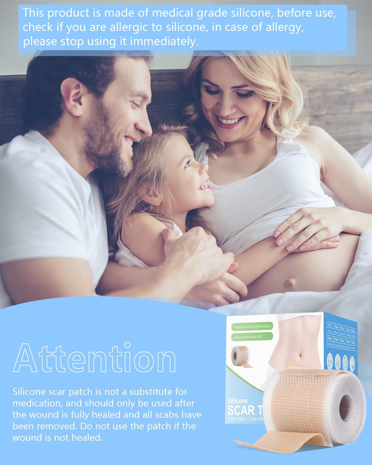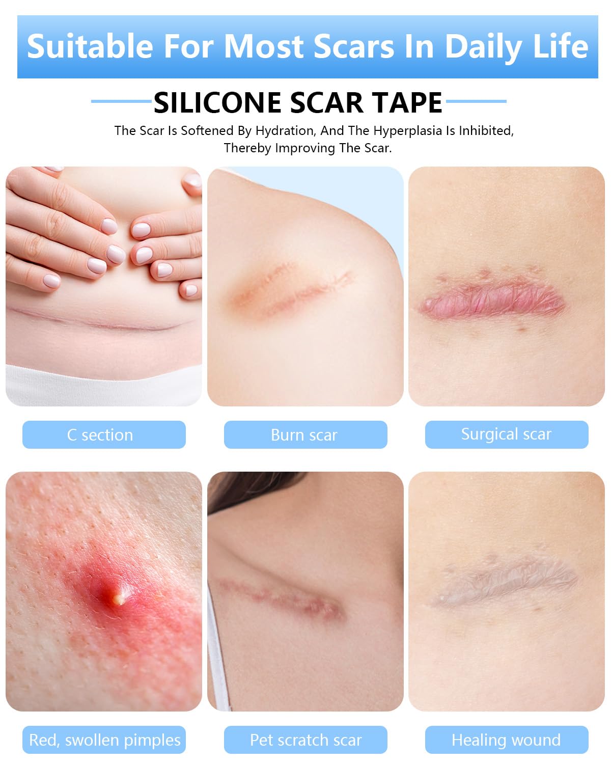 Convenient experience:This 1.5m silicone scar patch is easy to use. Before use, simply clean and dry the scar area, and then according to the actual length of the scar, use the calibration mark or ordinary scissors, easily cut out the appropriate length, tear off the protective film on the back of the scar sticker, and apply it evenly on the scar.