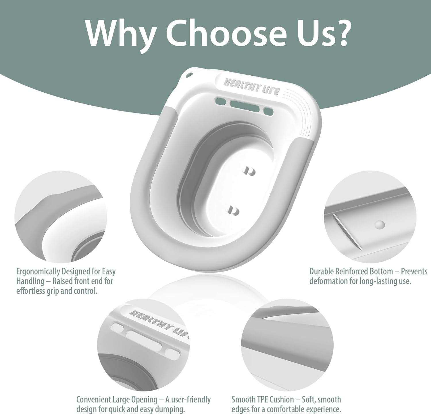✔️【Durable, High-Capacity Sitz Bath Tub】Constructed from high-quality PP+TPR materials, this heavy duty sitz bath supports over 300 pounds. It is a durable sitz bath tub that is odor-free and high-temperature resistant, guaranteeing long-lasting use. As a non-slip sitz bath, it provides a safe, reliable, and comfortable solution for personal care and postoperative care for everyone, including the elderly.