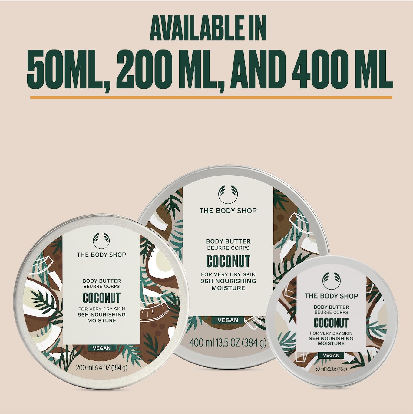 Love and nourish very dry skin: Our creamy, vegan Coconut Body Butter moisturizes and nourishes very dry skin with 96 hr moisture