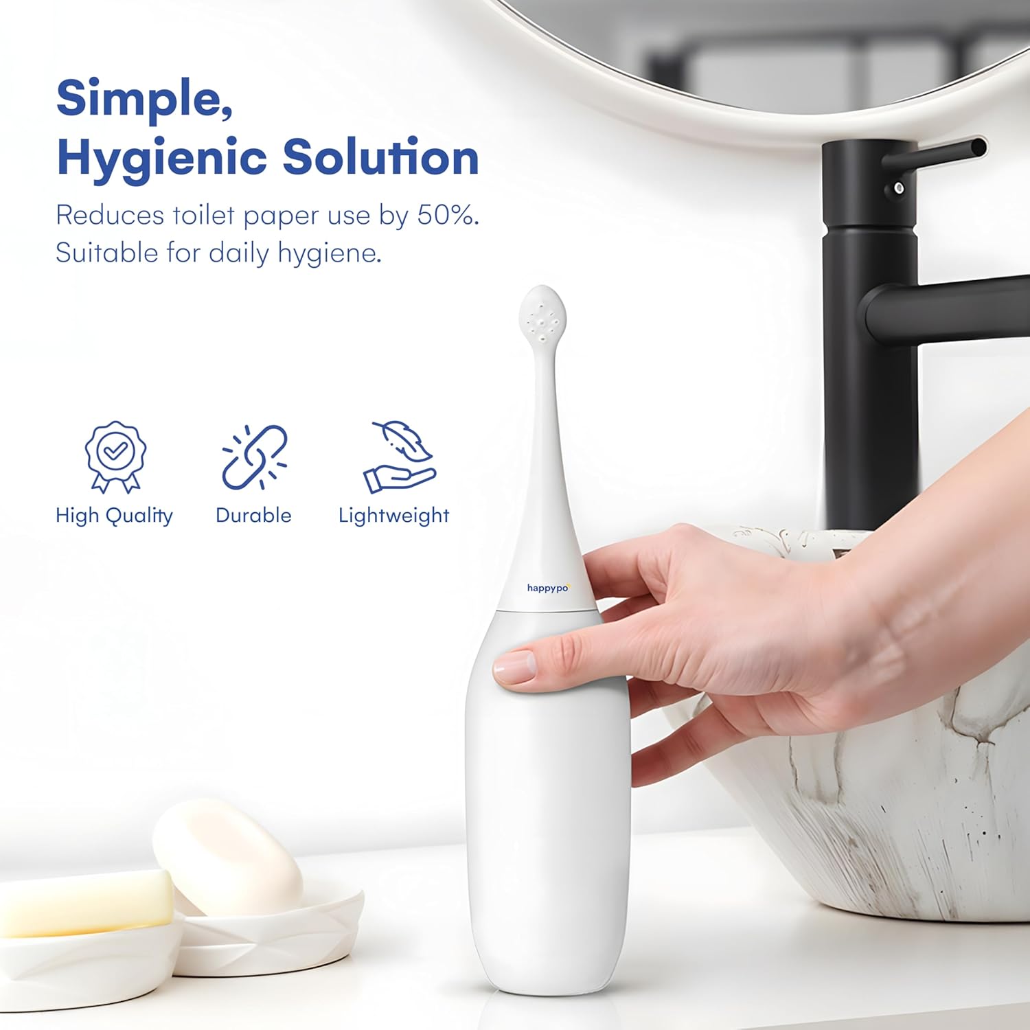 HappyPo Bidet: Portable, BPA-free, gentle water cleaning. Ideal for sensitive skin, postpartum care, and reducing waste.