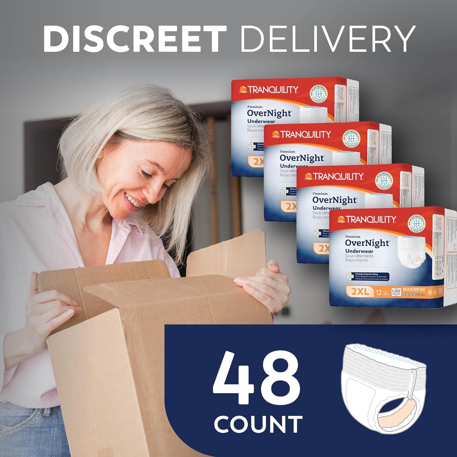 12 reviews for Tranquility Premium OverNight Disposable Absorbent Underwear (48 Count) – 2XL, 62-80 in. Waist – Maximum Absorbency, All-Night Sleep, Breathable Comfort, 48 Adult Diapers